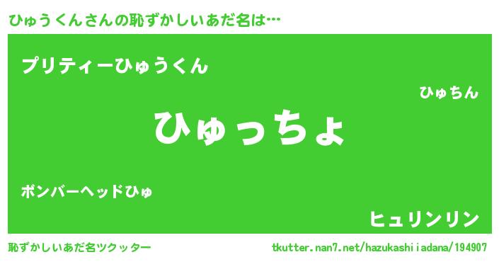 | 意味不明あだ名 | 『住所不定無職ひゅうくん(13歳)』 |