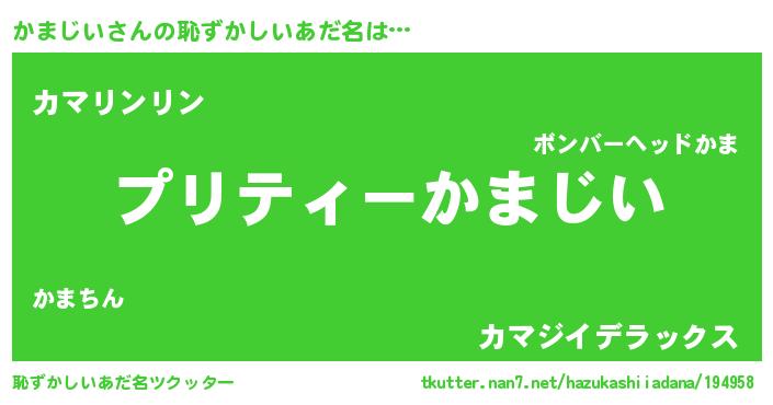 | 意味不明あだ名 | 『住所不定無職かまじい(40歳)』 |