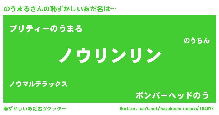 | 意味不明あだ名 | 『とにかく怪しいのうまる』 |