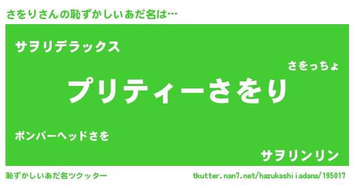 | 意味不明あだ名 | 『ペロリンさをり』『自称さをり』 |