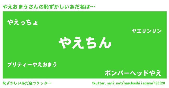 | ヘコむあだ名 | 『やえおまう(小並感)』『酢こんぶ』 |