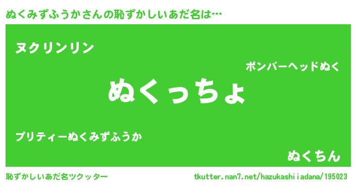 | ヒーロー風カッコイイあだ名 | 『ウルトラぬくみずふうかマン』 |