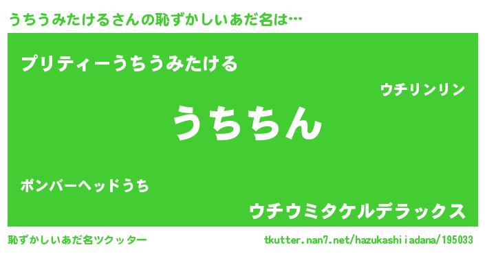 | 意味不明あだ名 | 『永久保存うちうみたける』 |