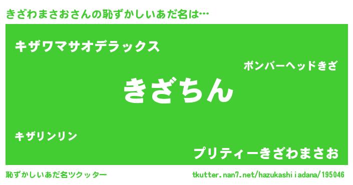 | ヘコむあだ名 | 『きざわまさお(笑)』『きざもー』 |