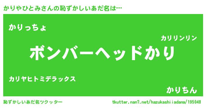 | 男性向けラノベタイトル風あだ名 | 『ノーゲーム・ノーカリヤヒトミ』 |