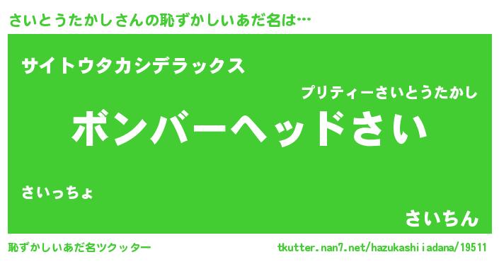 | ヘコむあだ名 | 『さいとうたかし(遠い目)』『さいにゅー』 |