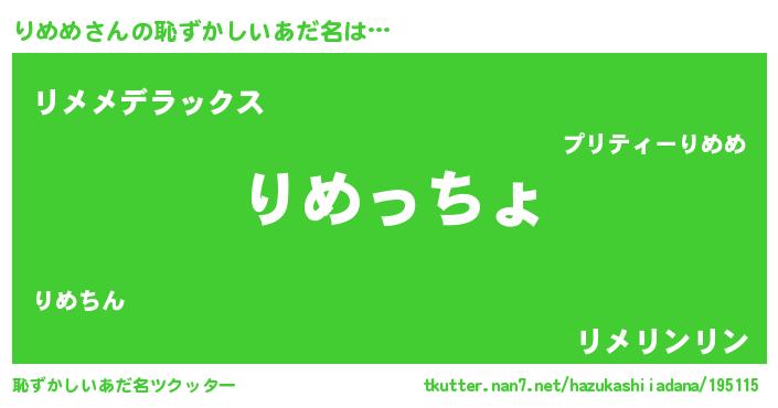 | 可愛いあだ名 | 『りめちー』『りめうちぇる』 |