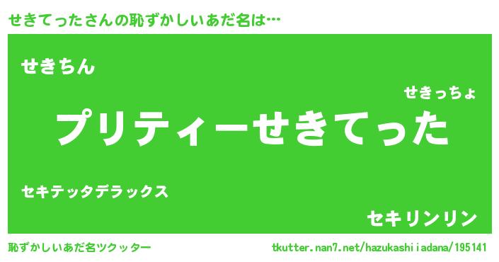 | ヒーロー風カッコイイあだ名 | 『スーパーセキテッタ』『ネオセキテッタ』 |