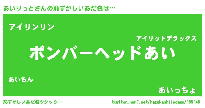 | ヒーロー風カッコイイあだ名 | 『正義の使者あいりっと』『魔戒騎士アイ』 |