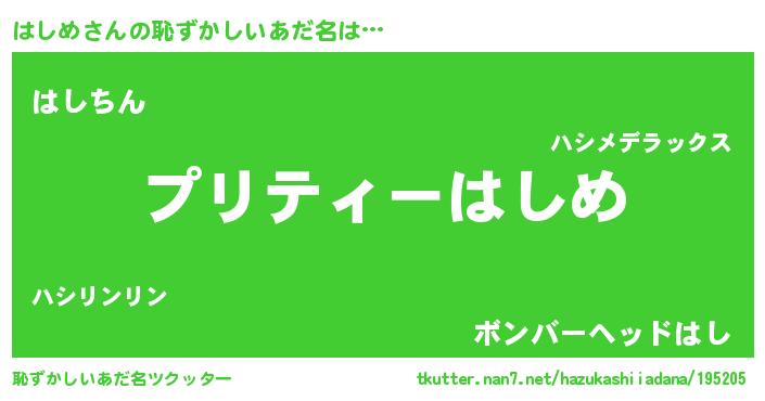 | ヘコむあだ名 | 『はしっふぃ~』『はしめ(爆)』 |