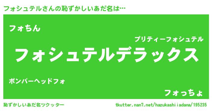 | ヘコむあだ名 | 『フォシュテル(笑)』『酢こんぶ』 |
