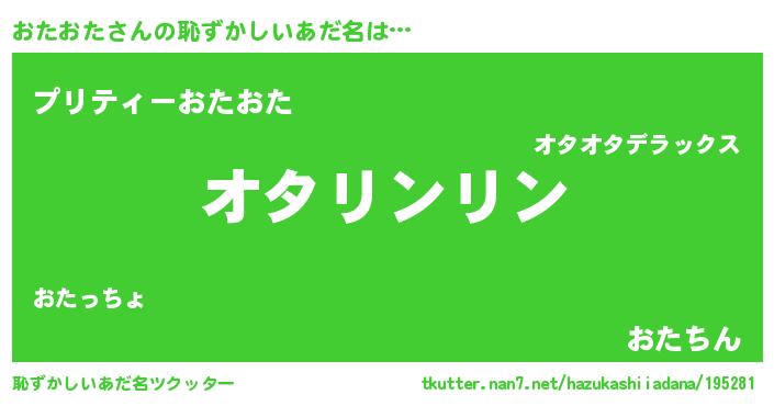 | ヘコむあだ名 | 『おた太郎』『おたもー』『なまこ酢』 |