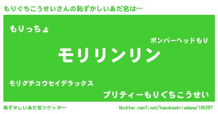 | 意味不明あだ名 | 『とにかく怪しいもりぐちこうせい』 |