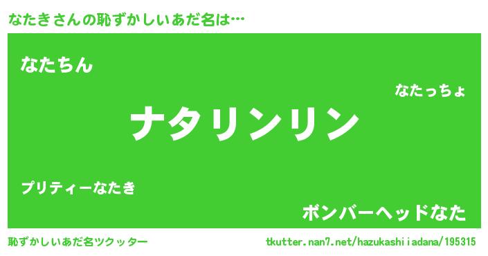 | ヘコむあだ名 | 『なたぷりん』『なたき(遠い目)』 |