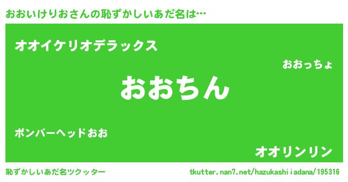 | 意味不明あだ名 | 『永久保存おおいけりお』 |