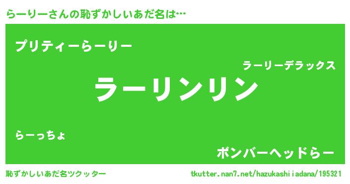 | 意味不明あだ名 | 『とにかく怪しいらーりー』 |