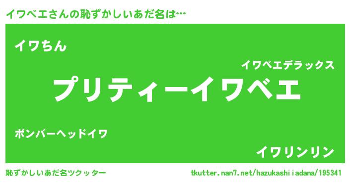 | 意味不明あだ名 | 『ペロリンイワベエ』『永久保存イワベエ』 |