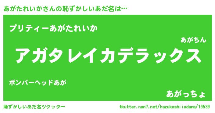 | 意味不明あだ名 | 『自称あがたれいか』 |