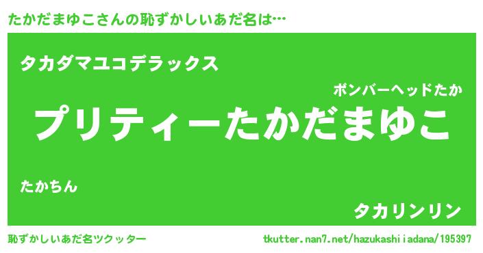 | ヒーロー風カッコイイあだ名 | 『仮面タカダー』『スーパータカダマユコ』 |