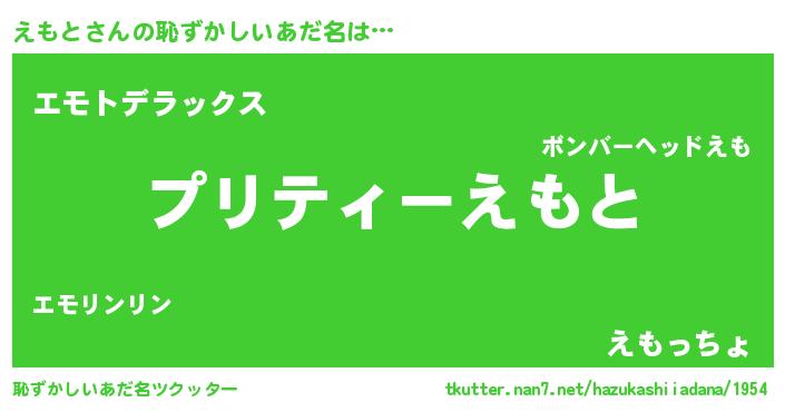 | ヘコむあだ名 | 『えももー』『豆乳』『えもっぺ』 |