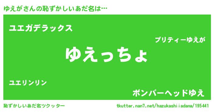 | ヘコむあだ名 | 『なまこ酢』『ゆえにゅー』『ゆえを』 |