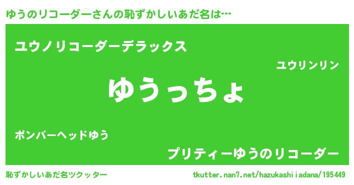 | 肩書あだ名 | 『ゆうのリコーダー総理大臣』 |