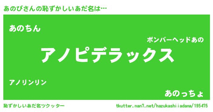 | 男性向けラノベタイトル風あだ名 | 『あのぴに滅ぼされるだけの簡単なお仕事です』 |