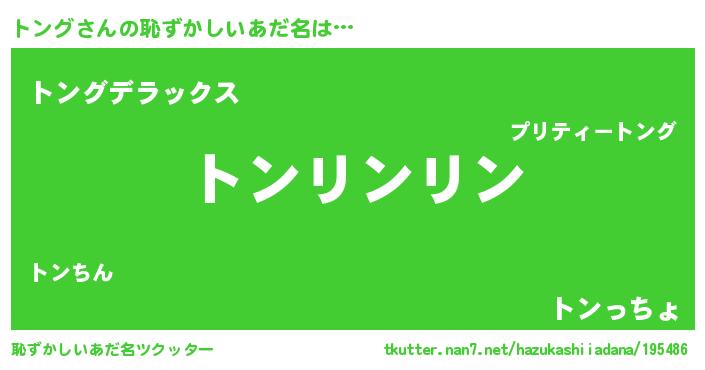 | 意味不明あだ名 | 『住所不定無職トング(98歳)』『自称トング』 |