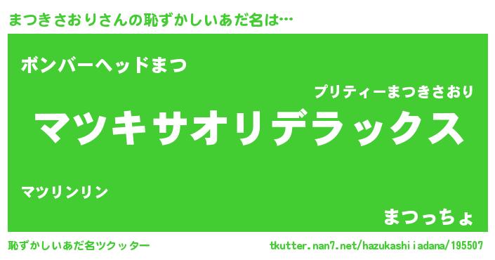 | 男性向けラノベタイトル風あだ名 | 『まつきさおり~年齢イコール彼女いない歴の魔法使い~』 |