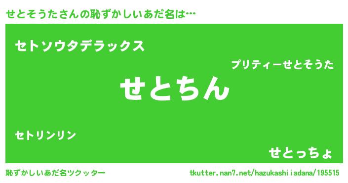 | ヘコむあだ名 | 『せとそうた(笑)』『つくし』 |
