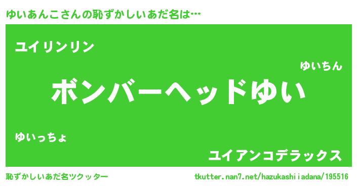 | 欧米人風あだ名 | 『ダニエルゆいあんこ』 |