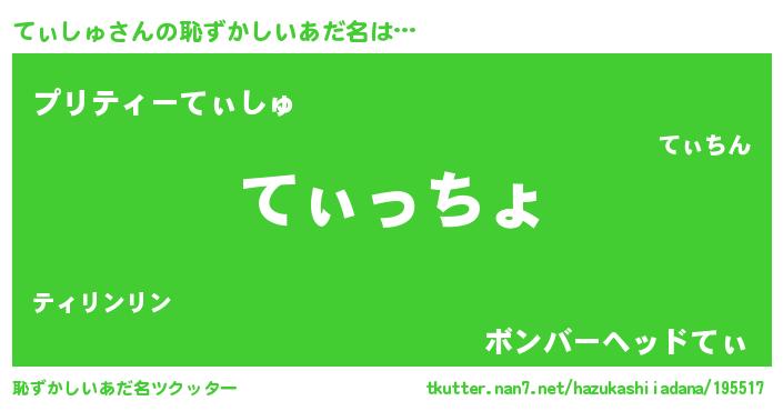 | ポケモン風あだ名 | 『ティシダネ』『ティチュウ』 |