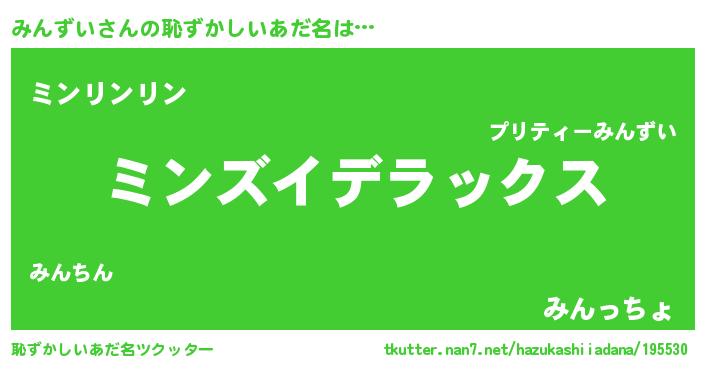 | ヘコむあだ名 | 『みんを』『酢こんぶ』『みんにー』 |