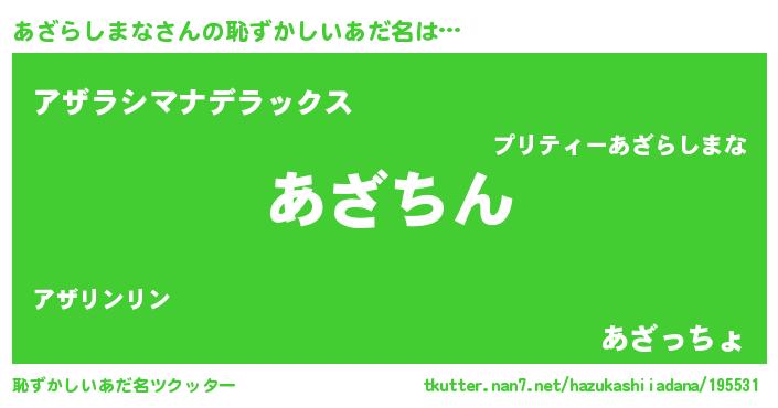| 可愛いあだ名 | 『あざぷりん』『あざらしまなママ』 |