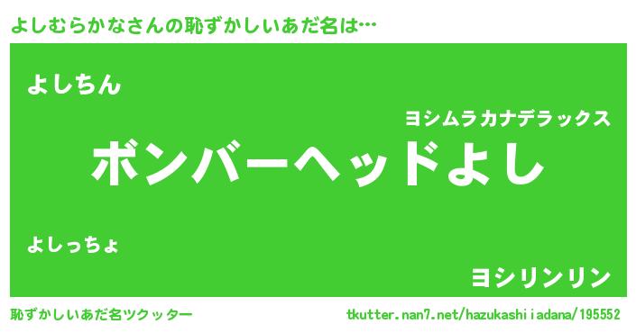 | 男性向けラノベタイトル風あだ名 | 『ノーゲーム・ノーヨシムラカナ』 |