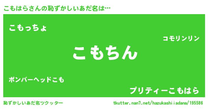 | 意味不明あだ名 | 『永久保存こもはら』『ペロリンこもはら』 |