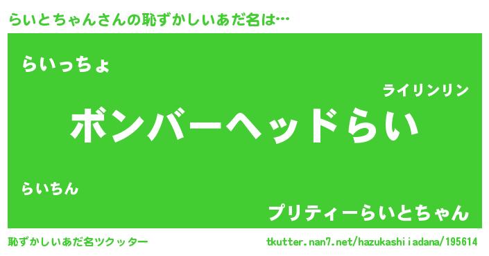 | ヘコむあだ名 | 『なまこ酢』『らいにー』『らいを』 |