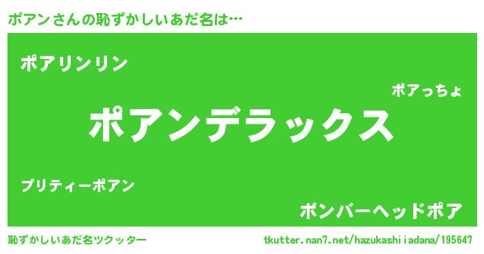 | 男性向けラノベタイトル風あだ名 | 『Re:ポアンから始める異世界生活』 |