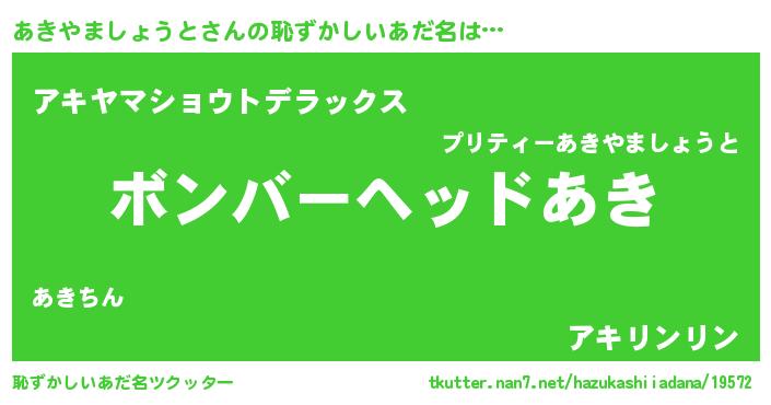 | 意味不明あだ名 | 『住所不定無職あきやましょうと(8歳)』 |