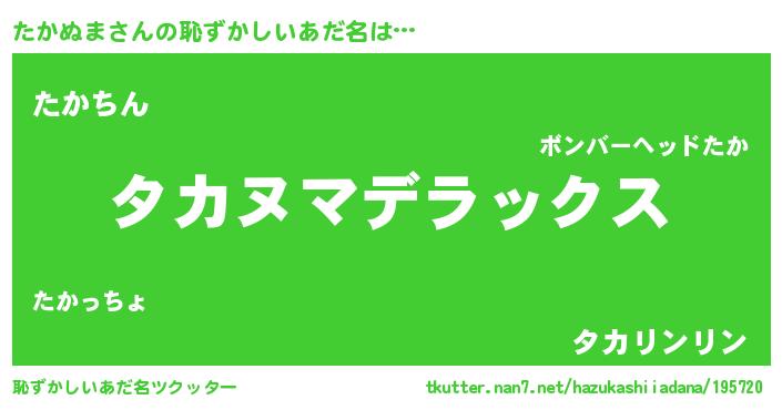 | ヘコむあだ名 | 『たかぬま(笑)』『たかっちょ』 |