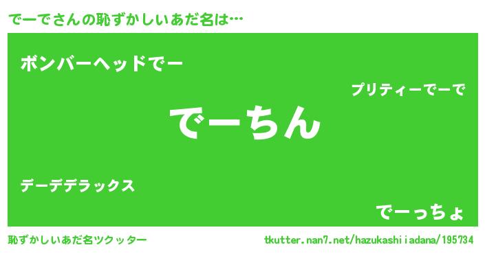 | ヘコむあだ名 | 『でーで(笑)』『牛乳』『でーお』 |