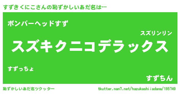 | 男性向けラノベタイトル風あだ名 | 『Re:すずきくにこから始める異世界生活』 |