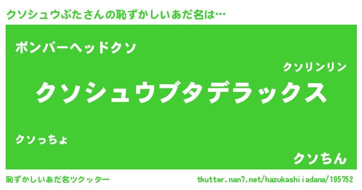 | ヘコむあだ名 | 『クソシュウぶた(笑)』『クソっぺ』 |