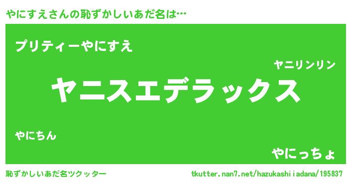 | 可愛いあだ名 | 『やにうちぇる』『やにぷりん』 |