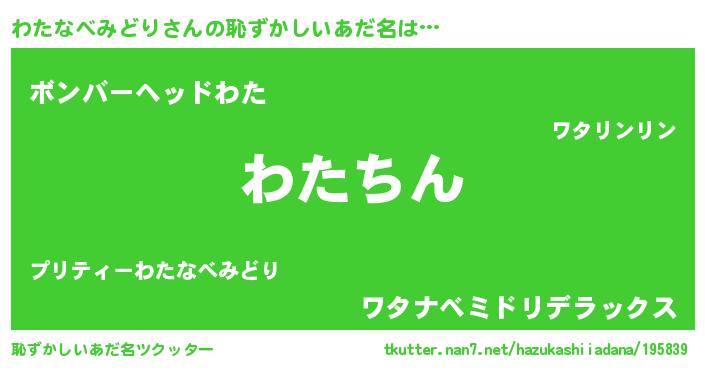 | 意味不明あだ名 | 『住所不定無職わたなべみどり(13歳)』 |