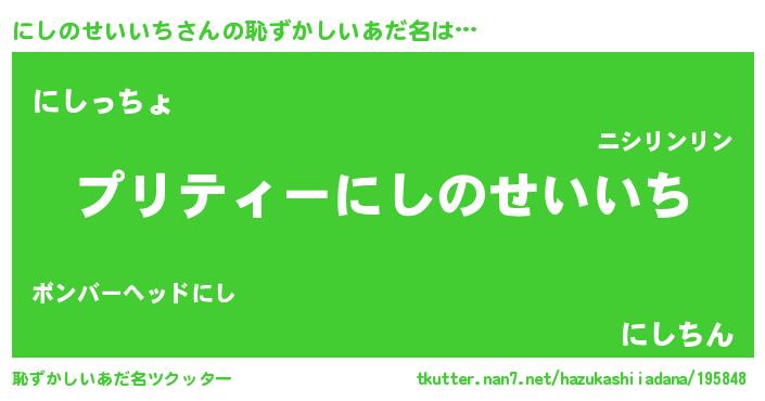 | ヘコむあだ名 | 『にしにゅー』『なまこ酢』『にしを』 |