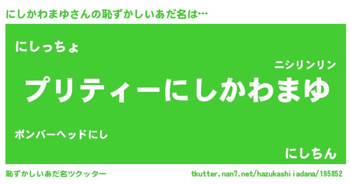 | 肩書あだ名 | 『にしかわまゆ社長』『にしかわまゆ教官』 |