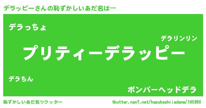 | 胡散臭い通販商品みたいなあだ名 | 『モテモテ間違いなしブレスレット…その名も「デラッピー」』 |