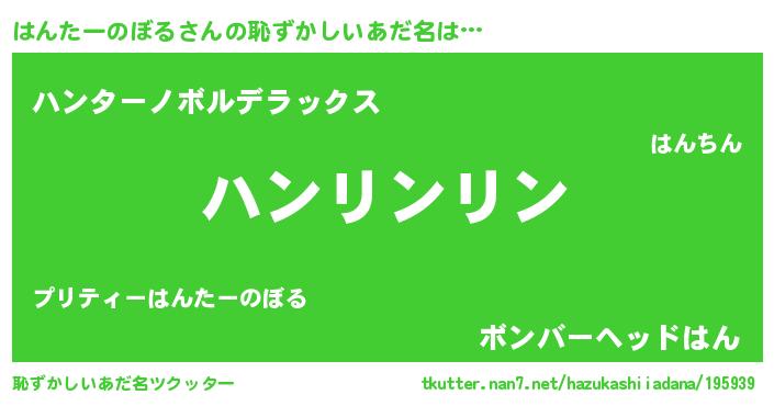 | 男性向けラノベタイトル風あだ名 | 『はんたーのぼるの嫁は女の子じゃないと思った?』 |