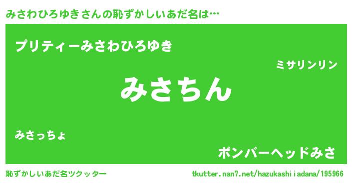 | 意味不明あだ名 | 『住所不定無職みさわひろゆき(11歳)』 |